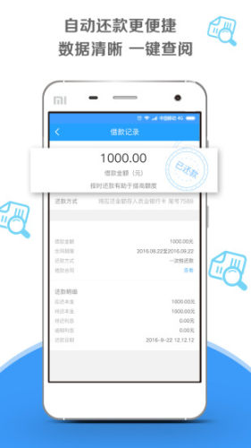 2.还款方便:支持支付宝、微信、(工商银行、中国银行、招商银行、浦发银行、兴业银行、广发银行、光大银行)等各大银行网上还款。