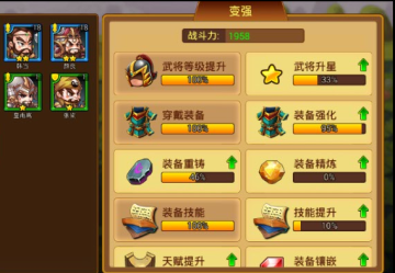 可以直观全面的看到单一武将能力,并对武将进行升级强化