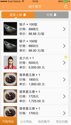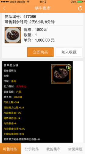 安全便捷的蜗牛集市iphone版将为蜗牛的多款游戏提供搜索、购买物品等功能。
