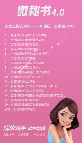 安卓微秘书是一款专用于微信转发,朋友圈点赞和其他微信辅助功能的手机软件,使用该软件可以方便管理你的微信,智能帮你维护微信客户,还有推送服务功能哦!