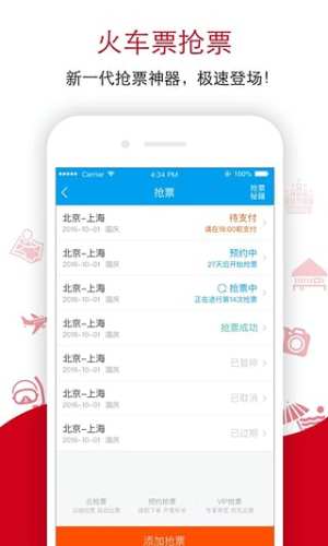 [火车票]个性化在线选座,支持送票上门。买下铺、连座票不用上车再换票。