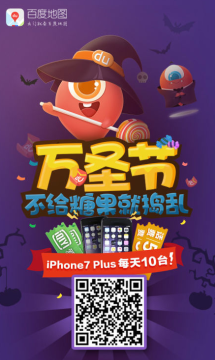 目前在百度地图中万圣节为大家带来了两个活动哟,一个是糖果换iphone7 plus,另一个是百度地图叫车单单7折哟。