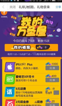 糖果可以用来兑换iPhone 7plus、爱奇艺会员,5元话费和2元现金券奖励!