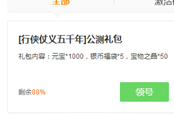 礼包内容:元宝*1000,银币福袋*5,宝物之晶*50
