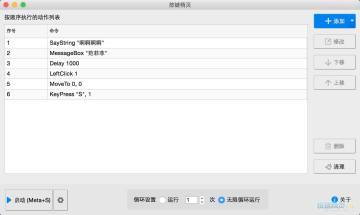 按键精灵Mac版全球首发,由按键精灵官方精心打造,现在广大苹果Mac用户也能在你的苹果电脑上使用按键精灵啦。目前支持按键精灵PC版大部分功能,丰富的命令支持,包括键盘按键、组合按键、鼠标点击、鼠标移动等,让你可以在Mac系统上充分发挥按键精灵的强大之处。