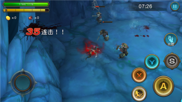 游戏采用左下方为虚拟控制摇杆,右下方为技能按键方式进行战斗控制。