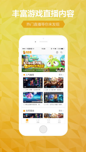 首页直播:推送当前最最最热门的游戏直播内容。