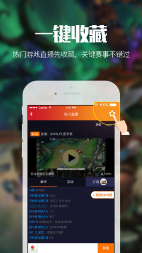 4.一键收藏:热门游戏直播先收藏,关键赛事不错过