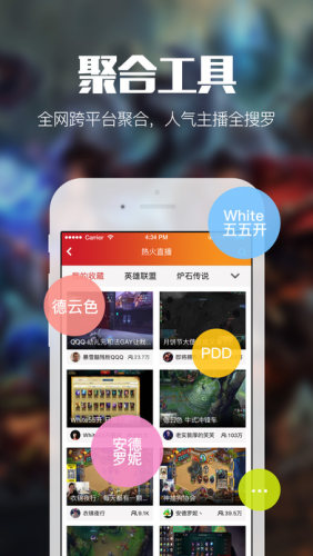 3.各路大神各显神通:跨平台聚合工具,各大知名平台人气主播,都在一个App;