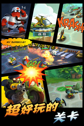 战争中还有一个至关重要的因素——战术。战术可以通过手动释放,选择合适的时刻给敌人来个致命一击。当然如果懒得动手与思考,也可以选择自动战术,把一切交给你的敢死队队员。新战术通过解锁关卡获得,于是推图的动力就这样来了。