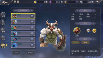 图鉴界面,在这里,你可以查看所有的灵兽的名称、灵兽的属性、灵兽的技能、灵兽的武学和灵兽的分类(坦克型、攻击型等)。