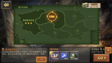 ——“风云战役”通关后可获得大量经验以及部队装备,风云战役需要更好的部队配置和针对性的排兵布阵来攻克,非常有挑战性。(指挥官们如果不会布阵,可以参考对应的副本“攻略”看看其他指挥官是如何排兵布阵的)