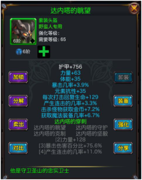 装备的属性都随机产生的,属性或适合你加强防御,或适合你加强攻击。