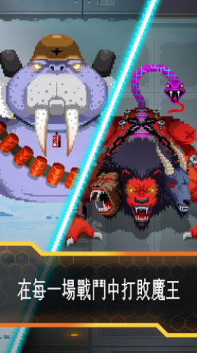 全世界的异能者在八年前建立了国际联盟,阻止邪恶的 Kraken 集团统治世界。由於担心恶势力卷土重来,於是国际联盟找来了我们的小英雄,由画素构成的 Leo 进行调查。一路奋战杀进 Kraken 的南极实验室,发现他们的邪恶阴谋,阻止他们制造可怕的怪物。您必须闪躲丶痛击和战胜形状诡异丶一只比一只更凶猛的魔王怪兽,并且组装威力强大的武器军火库来摧毁敌人。撂倒 Kraken,彻底击垮邪恶工厂!与邪恶大魔王 KRAKEN 决一死战