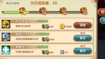已完成的任务可以直接领取奖励,未完成的任务可以选择前往,直接跳转前去完成任务。