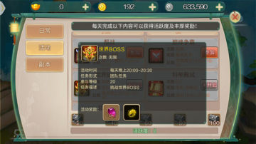 在《天道》中,玩家等级满20级后便会开启此玩法,游戏中的世界boss在每天下午20:00-20:30可单人或组队进行,想要证明自己实力,想要体现自己本事?记得把握好时间守候哦!打败boss不仅能彰显你的实力,参与过的成员可获得击杀奖励。
