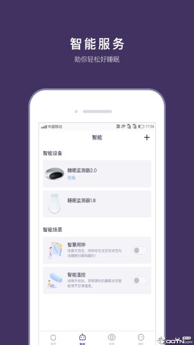 一款集【实时监控】【睡眠报告】【改善日记】【家居助眠】多个功能为一体的app。它能将所有睡眠相关的数据进行跟踪记录并分析,自动生成睡眠报告,定期给出睡眠建议,从而为您提升睡眠质量。