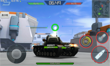 按钮1为开炮按钮,点击就可以开炮!因为中型坦克的主武器为机关炮,所以按住开火按钮可以开火扫射哦~