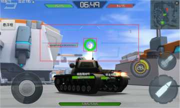 图中蓝色框体为自动锁定框,战斗时将自动锁定框套中目标即可完成锁定,锁定后炮 口会自动瞄准被锁定的目标