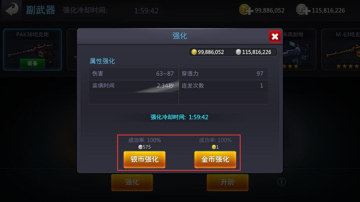 强化过程中有一定概率会失败,副武器等级越高,失败率越大;