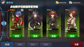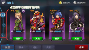 在队伍行列,玩家可通过点击最左侧的数字对当前指挥官队伍进行即时更换,点击数字后系统将会自动默认该队伍为当前队伍。