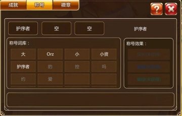 在游戏中可获得词组卷轴,开启词组卷轴后可随机获得称号词组,装备已获得的词组,可显示于头顶之上,稀有词组可通过稀有成就获得,积分商城可兑换特定称号,酷炫特效。
