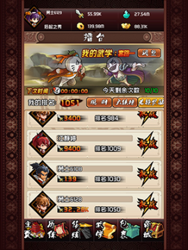 想要获得更多的武学和更高等级的神兵吗,赶快来暴走擂台击败骑在你头上的对手吧!