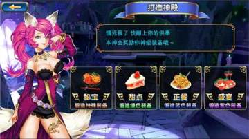 当玩家新获得英雄或是英雄分别达到25级和50级的时候,就意味着新装备的锻造需要提上日程了。玩家需要装备时可以进入《打造神殿》选择供奉不同的美食来获得狐仙赠与的不同品质的装备。