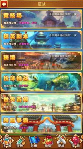征战系统是各项副本挑战的集合地,共由五大副本构成。这里主要介绍蓬莱仙山系统。
