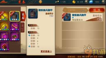 上面图中胸甲的详情上我们可以看到基础属性是防御+73