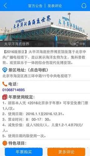 APP可随时查看各场馆景区介绍规则及更新公告,还有实时导航、直拨电话、在线客服、我的足迹、发表评论、查询快递等功能。
