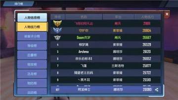 统计玩家各方面数据并进行展示的地方,包含以下榜单:战力榜、装备榜、血量榜、物攻榜、法攻榜、物防榜、法防榜、等级榜、职业排名榜。