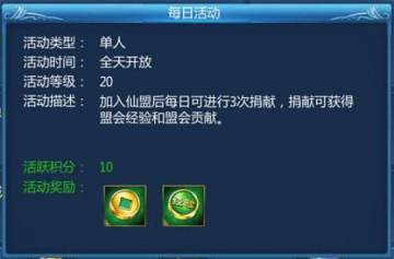 仙盟的繁盛离不开大家的建设,每人每天可以在仙盟进行三次捐赠,捐赠完成以后可以获得盟会经验和盟会贡献。