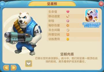 作为真男人部队,坚盾熊们永远是出现在第一线的战场上与敌人近距离厮杀,壮硕的身躯与厚实的盔甲给予了他们强大的抗击打能力。有坚盾熊顶在前方,远程部队才能安心的输出。但是由于体形庞大,每一次能够出战的坚盾熊的数量会有所不足,因此,一旦坚盾熊被单点能力极强的武器击退,那么躲在他们身后的企鹅大军和火炮兔们也就成为了待宰的羔羊,所以能否合理的指挥这些靠谱的壮汉们也是对指挥官战术能力的一个重要考验。