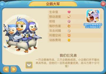 团结是超萌星的企鹅们赖以生存的准则,喜欢抱成一团的他们在战场上也同样坚持着“人海战术”,数量碾压是企鹅大军最大的特点。虽然他们武器威力一般,也不是个合格的肉盾部队,但是正所谓双拳难敌四手,如果让企鹅们形成了规模,绝不是一股可以小觑的力量。在战场上,可以进行区域攻击的武器是企鹅大军的天敌,如果能够成功清理掉或者控制住这些烦人的武器,这些团结的小家伙们会告诉你什么叫“企鹅过后,寸草不生”。