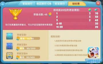 指挥部达到5级后,将会开启激情锦标赛,每轮锦标赛持续3天。超萌星人获得的荣誉点数将会影响锦标赛的排名。战胜同本玩家可获得荣誉点数,而进攻失败以及被敌人攻陷则将扣除荣誉点数。每轮锦标赛结束之后,排名前20的玩家将会得到图腾材料、宝石奖励。另外,荣誉点数达到80、200、400时,还可以得到各阶段的荣誉宝箱。想要在锦标赛上榜上有名,优化基地的防御布局以及提升军事研究水平是当务之急。