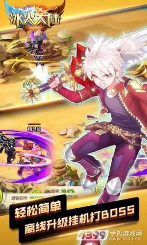 《冰火大陆》是一款放置类纯萌系炫酷手游,立体渲染画面细致地描绘出史诗级激战,冰与火的大陆纷争、人与人、人与兽的对抗搏杀,使游戏充满激情和欢乐,还能离线升级、挂机打BOSS,轻松简单!