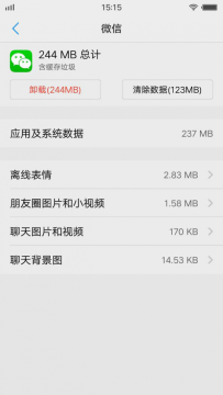 新版空间管理将能够精确识别各类文件,让手机的文件和空间管理更加智能。Funtouch OS 2.5版本的“空间管理”功能已经能够智能识别常用App并详细列出使用情况。而Funtouch OS 3.0的“空间管理”在这一基础上进一步强化,所有App都可以列出详细的存储空间信息。除此之外Funtouch OS 3.0还能够智能识别App文件信息。比如进入微信的详情界面后,可以看到 “视频、离线表情、聊天 语音、聊天图片” 等分类,哪一类数据占用了较多空间一目了然,从此对手机的存储空间使用情况了如指掌。清理垃圾文件时再也不用担心重要文件被删除。