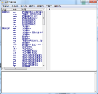 2、软件内收集了常用汇编命令和说明,使用时在命令列表双击可将指定命令添加至代码编辑区,你也可自行添加和删除列表中的命令。