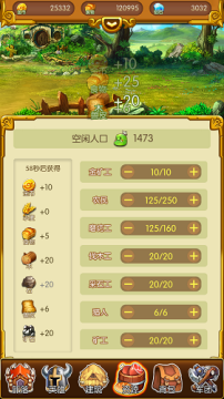 如图所示,配置不同的工种,生产不同的资源。对于各位主公而言,可以根据自己领地发展的需要,决定如何配置人口。首先应该保证基础资源食物、木材、石料,有了充足的资源,就有了扩军备战的实力~