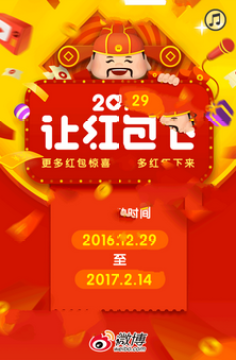 去年红包飞期间,有3万多个企业和明星名人参与进来,网友在微博抢红包的总次数超过9亿次,有1.2亿人抢到红包。