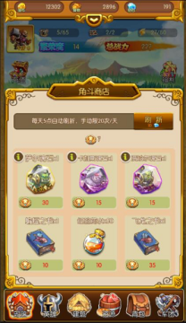 1个商店:进入演武场界面中的“角斗商店”,大家可以看见商店里的物品——有传说和史诗级武将、经验石、兵书、珍宝等等,需要使用角斗币进行兑换。