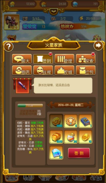 每天,成员可以到氏族进行签到,获取不同的奖励。签到还会使家族的活跃值上升,到一定分数后,族长就可以升级家族了。家族升级后,可以吸收更多成员,每日签到的奖励也会倍增。