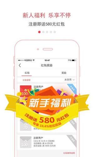 【新手专享】 注册即送注册580元红包; 专享14.4%预期年化收益
