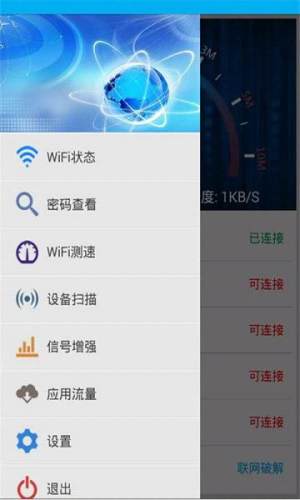 一款管理手机wifi的应用工具。自动匹配优质的WiFi资源,可以针对所连接的wifi进行测速,以及所连接的wifi信号进行加强、对流量监控的管理等。是您上网的好伴侣。让您随时随地发现身边的WiFi资源,享受真正快捷的网络服务。