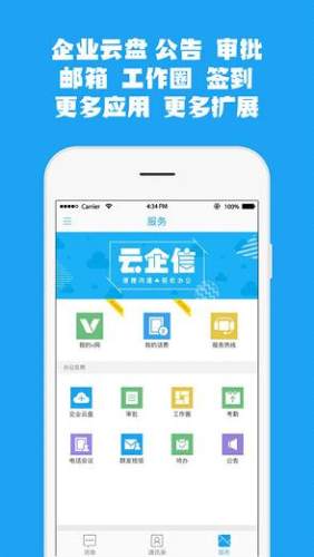 云企信为企业提供一体化移动办公协同服务,帮助员工在任何时间、任何地点,使用任何终端,进行高效的沟通与办公,助力企业降本增效。