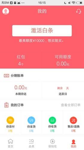 品质商城新推出白条功能,注册用户可激活白条,每人会有一定的白条额度,使用额度可在商城内提前消费购买商品,后期还款,提供多种分期选择,还款压力小。