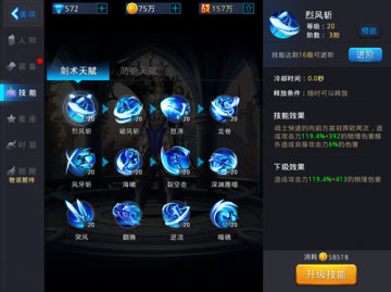 点击人物技能面板中进阶按键可以进入对应技能进阶界面。