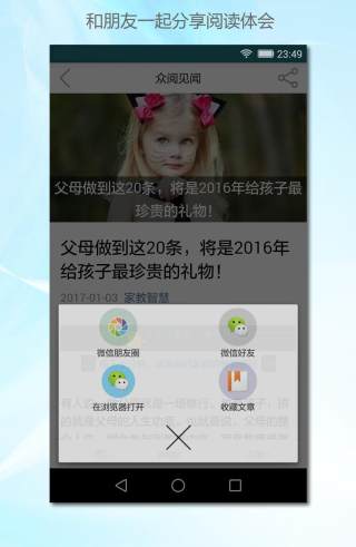 众阅见闻是一款手机资讯阅读类软件,众阅见闻app为用户提供大量微信文章,让用户休闲时间可以轻松阅读。嗨支持收藏,分享给其他人观看,喜欢朋友快来下载吧!
