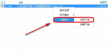 解析后,鼠标右键选择下载选中——视频下载。